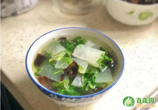 2、去浮腫。冬瓜清熱生津,所以它有去浮腫之功效,冬瓜木耳香菜湯很合適身體浮腫的人群。
