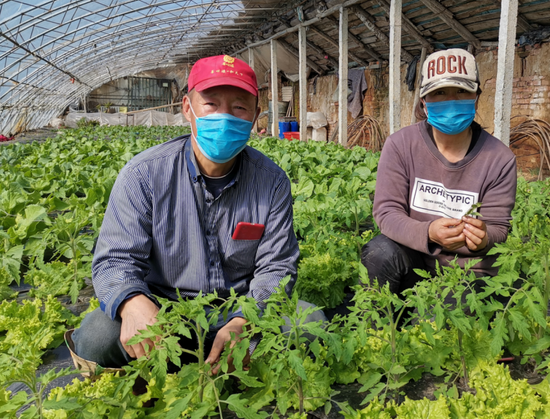 據(jù)農(nóng)產(chǎn)品配送了解北大荒股份八五六分公司種植戶趙健北家的8畝溫室棚內(nèi)綠意盎然,西紅柿、生菜、苦菊、黃瓜等蔬菜即將錯峰上市,預計效益達3萬余元。(劉思琪 張銀波 攝)